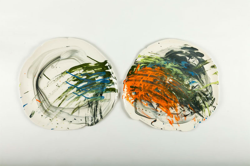 Ulrike Uschmann "weiß, rund, himbeermund"KUNST im blauen haus eröffnete am 9.9. 2018 die Ausstellung mit Arbeiten der Keramikerin Ulrike Uschmann. Ulrike Uschmann gehört zu den jüngeren und bereits sehr erfolgreichen Absolventinnen der traditionsreichen Kunsthochschule Burg Giebichenstein in Halle. Sie schloss ihr Studium 2017 ab, nahm aber bereits 2013 an der Ausstellung zum Bampipreis teil und wurde mehrfach ausgezeichnet. Uschmann zeigt Vasen, Teller, Objekte und Gefäße. Ihre Vasen zeichnen sich durch eigenwillige Formgebung mit überraschenden Faltungen aus, die man dem Material nicht zutraut, da wir Keramik und Porzellan meist „rund“ kennen. Die Vasen sind aus weißem Porzellan. Rund hingegen sind die von Uschmann gestalteten Teller. „Täglich am Teller von 9 bis 3“ beschreibt sie ihre Tätigkeit, in der sie aus intuitivem Impuls heraus ihren Tellern Farbe gibt und zwar in höchst origineller Malerei. Besucherinnen und Besucher dürfen gespannt sein, was die Künstlerin unter dem Titel „himbeermund“ nach Adelsberg mitbringt. So viel sei verraten: Uschmann gestaltet auch Schalen und Objekte. Sie ist enorm vielseitig, malt ebenfalls und hat im Berchtesgadener Land an der Berufsfachschule für Holzschnitzerei und Holzbildhauerei eine Ausbildung zum Holzbildhauer (so schreibt sie es in ihrem Lebenslauf) absolviert. Nicht genug damit: sie leistete ein freiwilliges Jahr in der Denkmalpflege in Vierraden ab und eines im Freiwilligendienst „Weltwärts“ in der Mongolei.